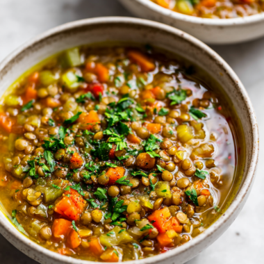 - Ladle into bowls, garnish with chopped fresh herbs if desired, and serve hot.