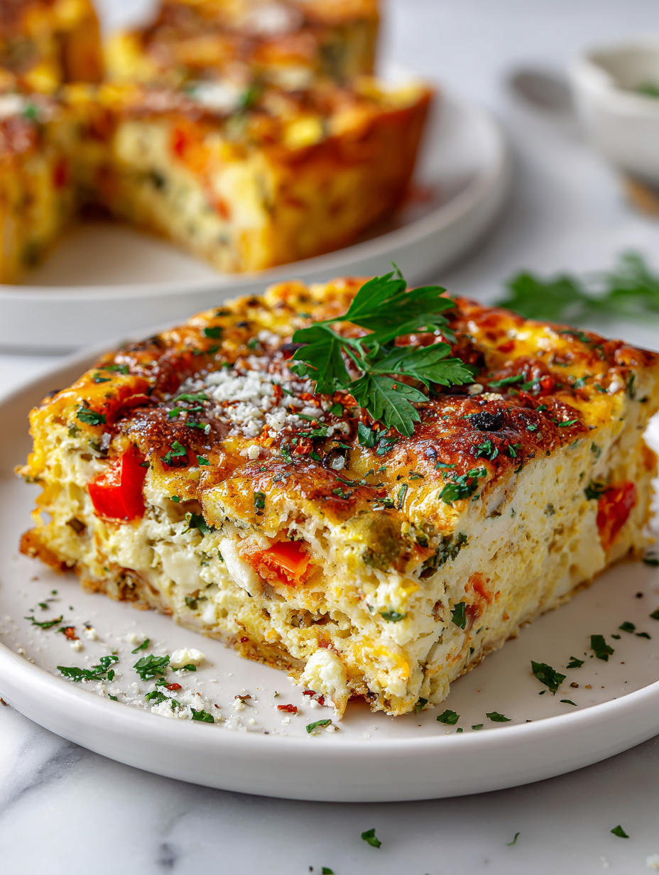 9. Slice into squares or wedges, then serve warm, garnished with fresh herbs if desired. Enjoy the tender, custardy interior with a slightly crispy top.