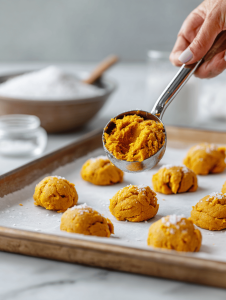 Step 7: Drop spoonfuls onto the prepared sheet, spacing them about 5 cm apart.