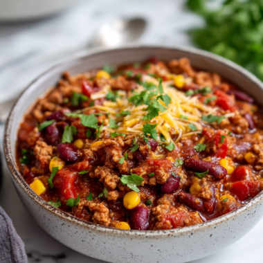 - Spoon the hearty chili into bowls, garnished with fresh cilantro, shredded cheese, or a squeeze of lime if desired.