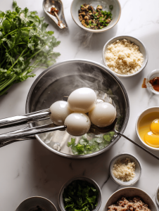 Step 3: Combine ground meat (beef or pork), the minced eyeballs, breadcrumbs, egg, and spices in a large bowl. Mix gently but thoroughly.
