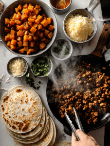 - Ground meat or veggie mix: The hearty base, seasoned well with taco spices. Swap with lentils or mushrooms for a vegetarian spin.