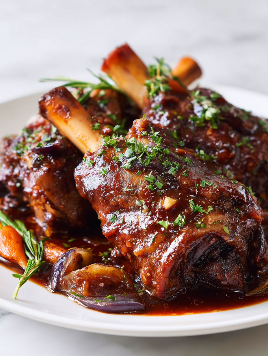 7. Rest & serve: Remove shanks, tent loosely with foil, and let rest for 10 minutes. Meanwhile, turn up heat slightly to reduce sauce if it’s too thin—aim for a rich, velvety texture. Serve with mashed potatoes or crusty bread, spooning sauce generously.
